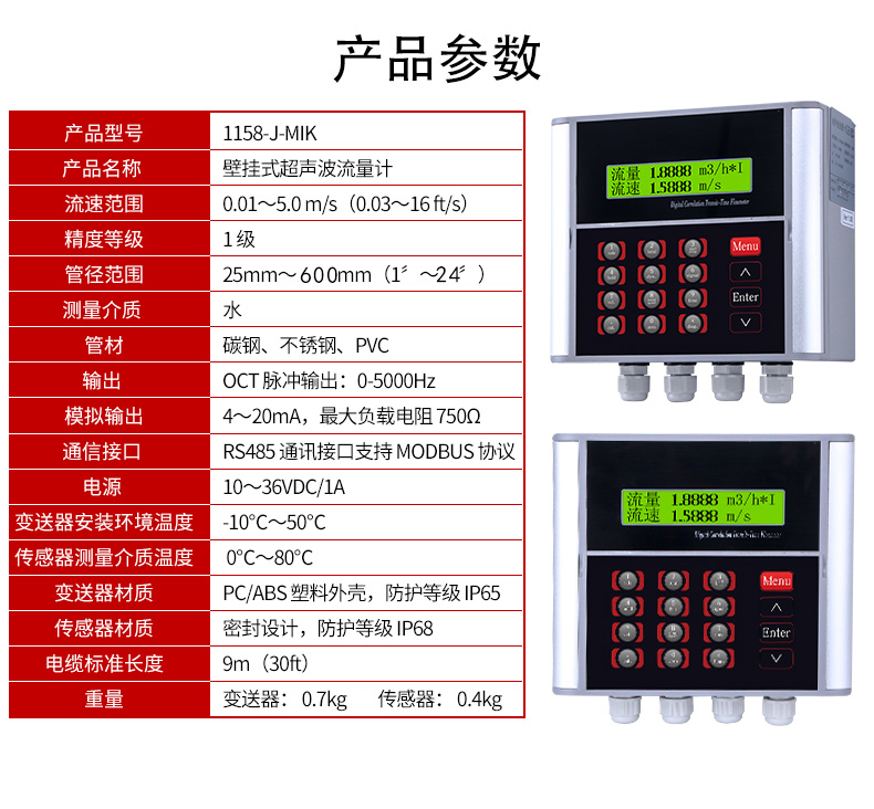 MIK-1158-J通用型 壁挂式超声波流量计无需破管 自来水循环水