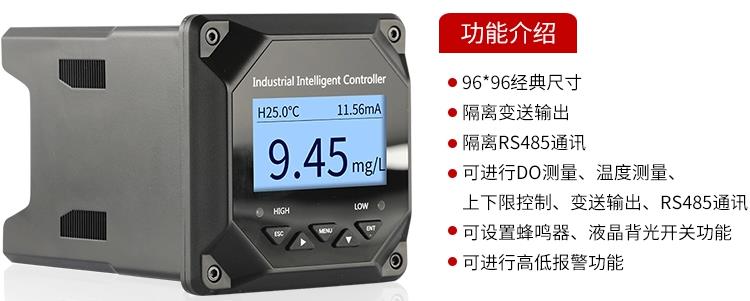 测量变量:溶解氧、饱和度、氧分压 测量范围:0~20mg/L、0~200%、0~400hPa 测量精度:0.01mg/L、0.1%、1hPa 综合精度:±1.5%FS 重复性:±0.5%FS 温度测量类型:NTC 10K、PT1000,自动A/手动H 测量范围:-10~60℃ 分辨率:0.1℃ 修正精度:±0.5℃ 输出类型:4~20mA电流变送输出 最大环路电阻:750Ω 输出类型:RS485数字信号输出 通讯协议:标准MODBUS-RTU协议 供电电源:AC220V±10%,50Hz/60Hz,5w 报警继电器:2路报警,触电容量AC250V/3A